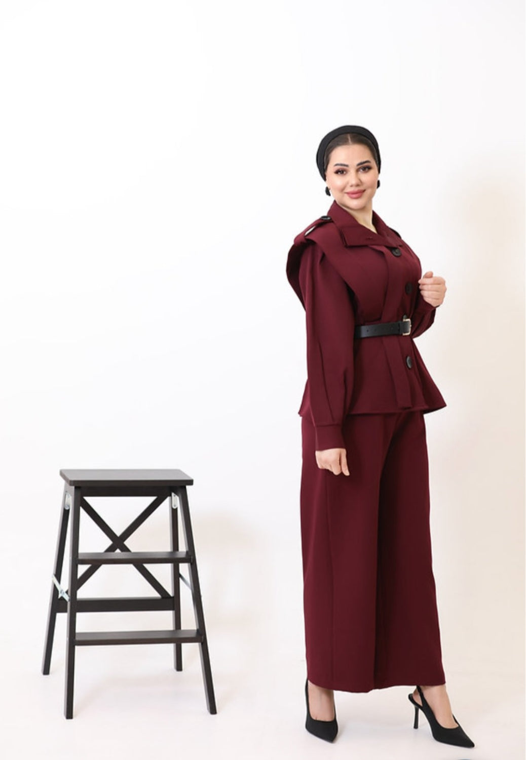 Elevate your style with LEBSATY's Red Suit, a striking two-piece set completed with a sleek black belt. The blouse comes in a versatile free size for a perfect drape, ensuring comfort and elegance for any occasion. Choose your ideal fit with our pants available in two lengths: Size 1 at 38 inches and Size 2 at 40 inches. Experience the blend of sophistication and functionality that our Red Suit offers, tailored for the modern, fashion-forward individual.